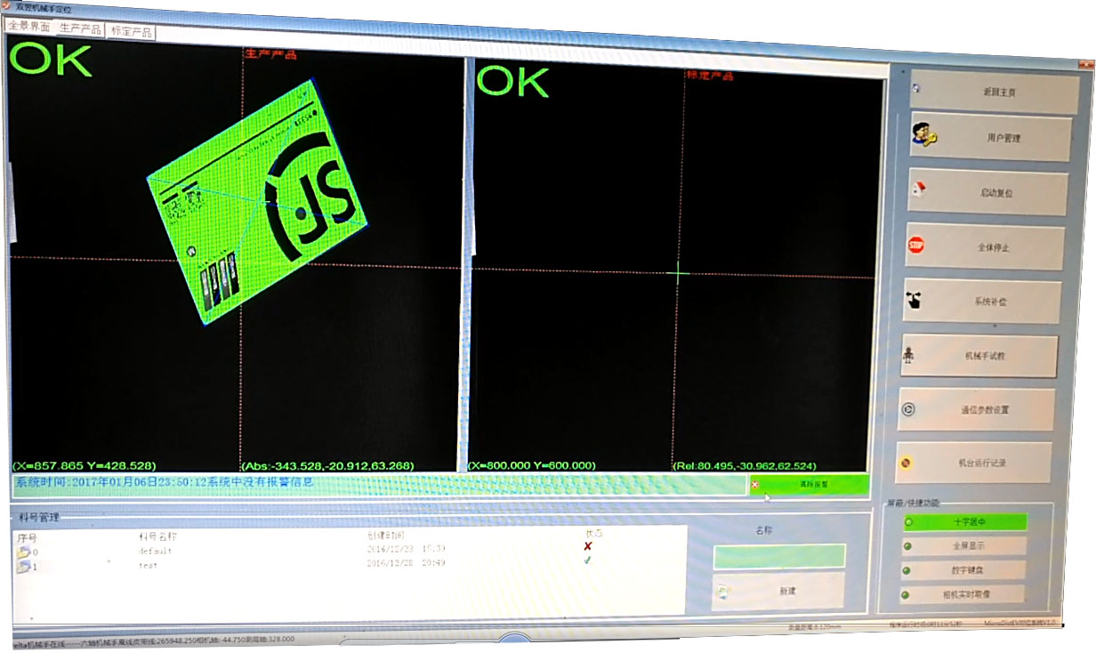 方案及系统原理:通过手眼标定算法实现相机和机械手坐标系统一。生产过程中,通过传感器、测高仪等辅助外设,相机给出机械手坐标系下产品位置坐标以及产品高度信息,引导机械手准确跟踪抓取产品。