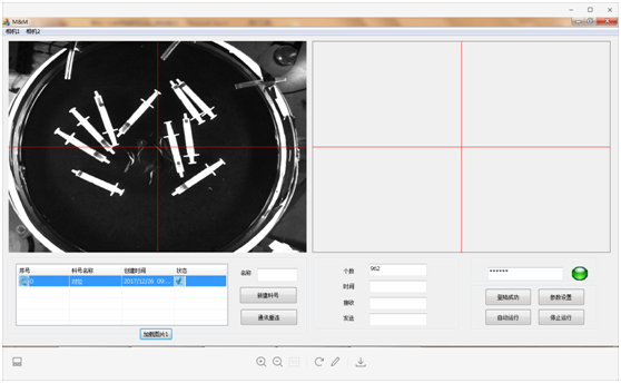振动盘上料尽量振散针管,视觉引导机械手做到同一规格的针管(散乱状态)进行定位拾取,包装