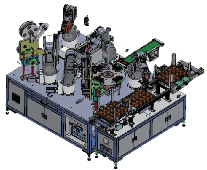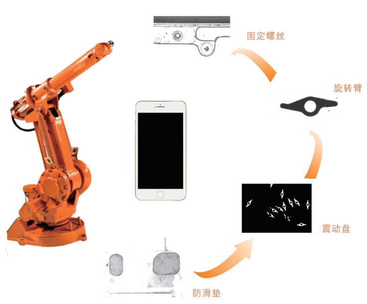 手机制造行业的高效性,要求加工速度与精度的不断提高,引入全自动组装生产线成为必要的应用需求。该项目通过”MicroPos“机械手视觉定位算法引导6轴机械手从料盘或料带上拾取零部件进行精确的手机组装。