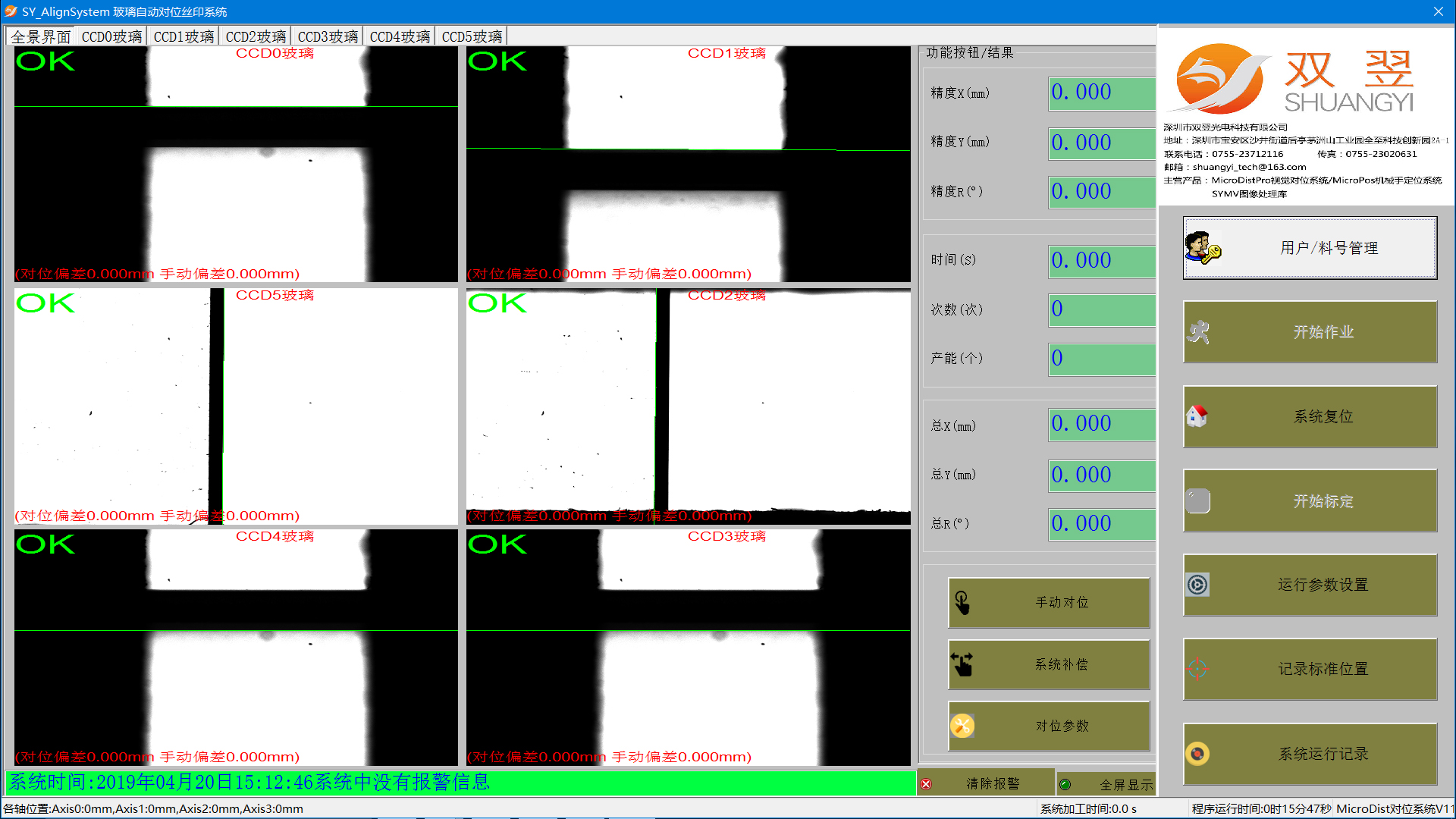 6相机丝印机应用软件使用视觉搭配对位平台来实现自对位应用系统包含6颗相机,通过抓取产品4条边的6个线段进行对位XXY平台,其中XXY重复精度5um,可以实现高精度应用.