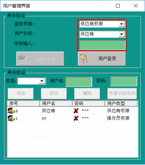 ② 用户管理界面,输入供应商权限密码:“310525”,点击“用户登陆”,进入软件管理权。Fig.3 用户管理界面