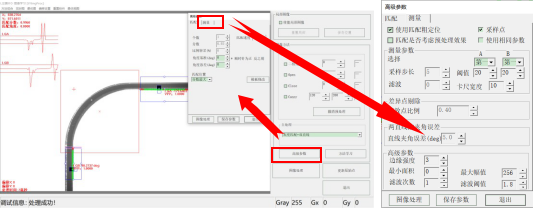 ? Step3:调整高级参数。点击“高级参数”,进入高级参数界面,调整参数如下图 9与图 10。可根据实际情况修改“分数”、“角度容差”、“滤波次数”、“有效点比例”、“直线夹角误差”等参数。
