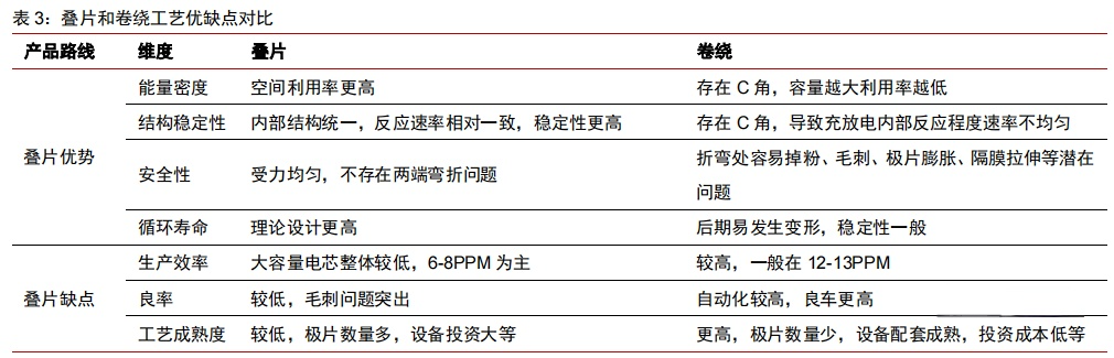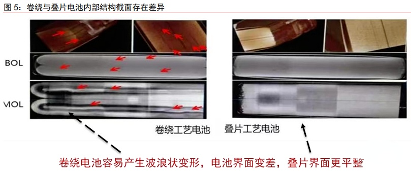 和卷绕电池相比,叠片电池具有一定优势: