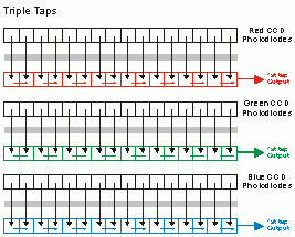 虽然3 CCD各别有独立的 Data Clock, 但是因为必需要R, G, B 的数据组合在一起才会变成线性的彩色影像, 所以实际速度并没有因为每个CCD 有独立的 Data Clock而加快。