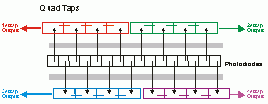 设计目的与上面的双输出是大致相同的, 主要差异在于它是将整个线性CCD的每个光电二极管在感光后分成前半段及后半段,将光转成电荷讯号分成两组将数据传递出去。