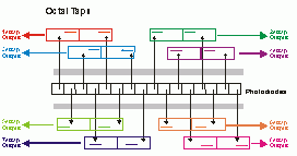 目前这类的设计是出现在超高分辨率(例如:12288pixel)的机种上, 除了分出前后段,而且各分出四组输出, 因此取像速度可以提高成八倍而不会因为分辨率很高而让线周期(Line Period) 拖太长。