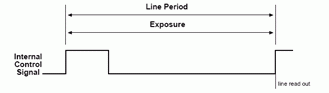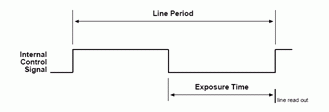 在内部控制讯号产生一个方波, 当方波下降时即开始作曝光取像, 此为缩短曝光时间的模式(一般可以透过Camera 设定工具达成), 但是线周期时间还是维持不变。