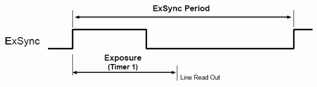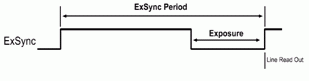 由外部送来的讯号作为同步触发讯号, 但此上升方波仅作为开始曝光的决定讯号, 曝光时间长短可由使用者设定, 同时此设定的曝光时间也决定线周期时间。