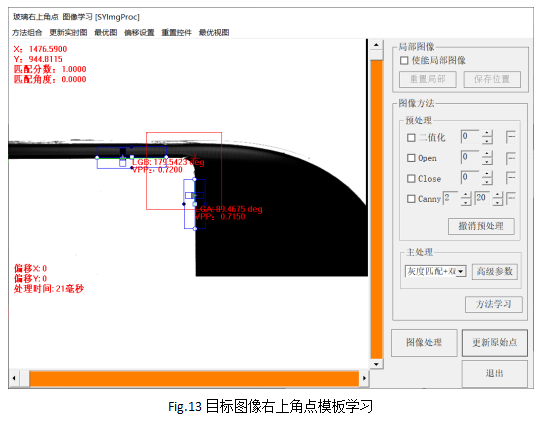 Step4:依次学习对象图像右上角点模板、左下角点模板、右下角点模板,方法与前面相同