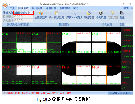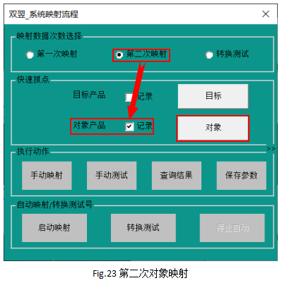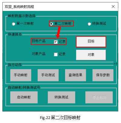 1) 系统全体停止,将TP搬运到目标相机下,打开映射界面,勾选第一次映射,再勾选目标产品“记录”,点击“目标”按钮,系统会抓取Mark点的坐标。
