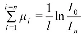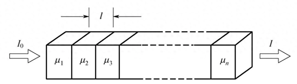 设有n个厚度为l的小立方体体素,如图8所示,每个小立方体近似地认为是均匀的介质,X射线透过时,衰减系数分别为μ1,μ2,…,μn,入射X射线的强度为I0。