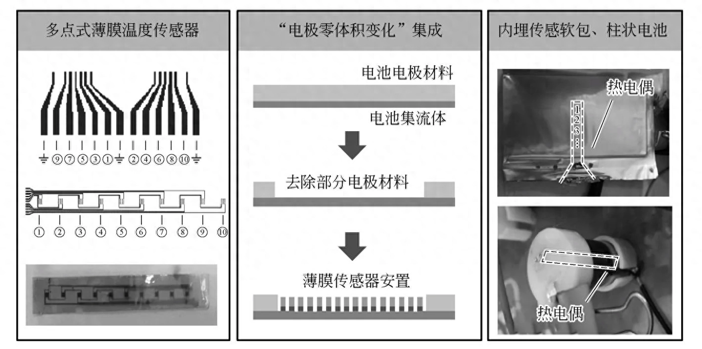 该内置感知系统,基于内部电化学环境及磁控溅射手段完成了多点式柔性薄膜传感器的制造,并实现植入式传感器与电池的一体化集成,通过循环性能和交流阻抗的测试,实现了对单体电芯内部温度的检测,可用于建立从单体锂离子电池到储能系统的智能管理系统。