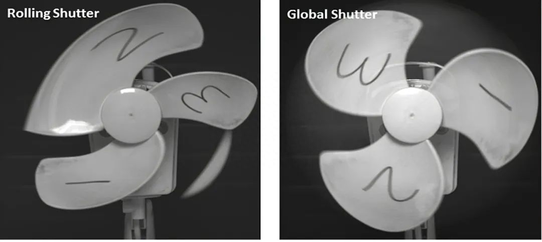 卷帘式快门是逐行顺序曝光,所以不适合运动物体的拍摄。当采用全局快门方式曝光时,所有像素在同一时刻曝光,类似于将运动物体冻结了,所以适合拍摄快速运动的物体。