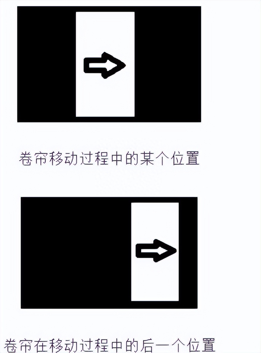 工业相机卷帘运动的方式由下图所示:卷帘在运动时,其卷帘开口的传感器来能接受光。