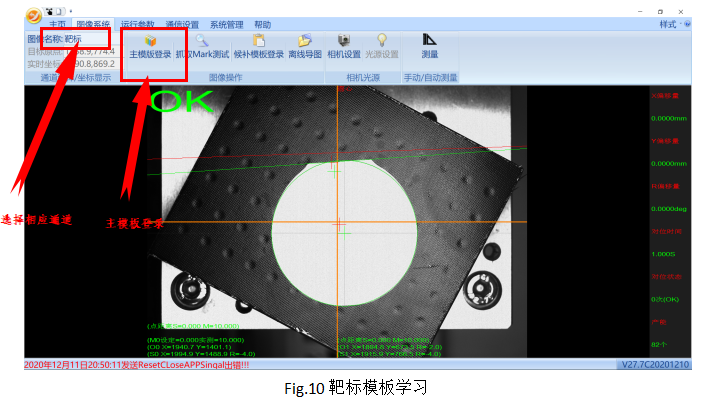 ? Step1:如图10所示,通过“通道名称”处选择我们要进行模板学习的通道:“靶标”,然后点击“主模板登录”进行图像的模板学习。
