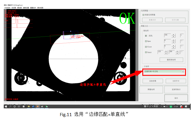 ? Step3:如下图11所示,下拉重新选择“边缘匹配+单直线”,黄色的模板框工具则会显示出来,通过拖拽调整使模板框位置和大小合适,再点击“方法学习”,则学习记录当前的模板。