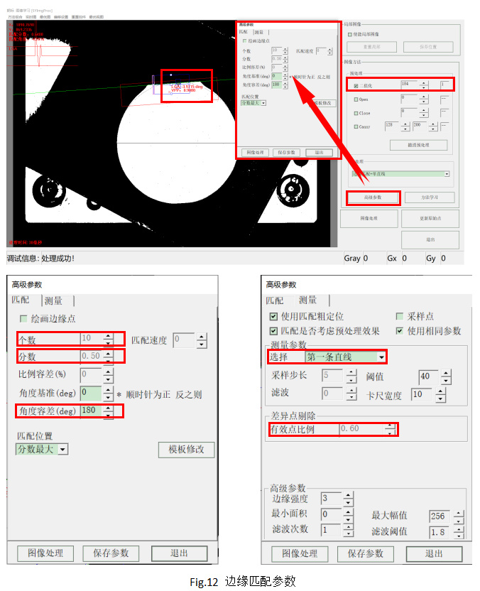 测量参数:选择第一条直线,目前是从外往里从黑到白搜索第一条直线