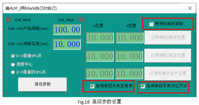 使用机械手抓取:旋转轴用来对位OK之后吸物料就需要选择机械手抓取,如果旋转轴用来承载物料完成对位就选择不使用机械手抓取。偏光片就选择不打勾,玻璃就需要选择打勾