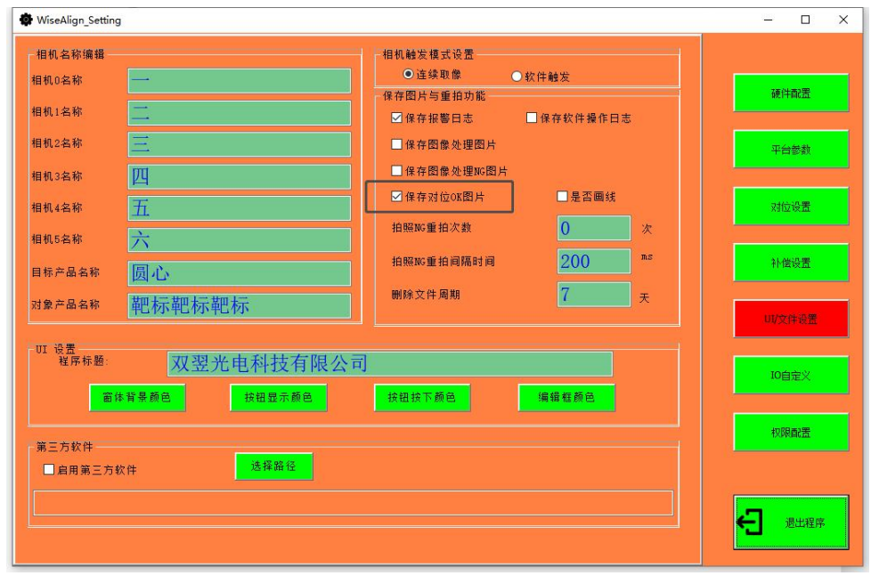2.找到【UI/文件设置】,如图所示勾选【保存对位OK图片】