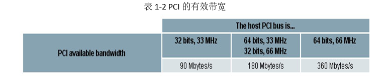 PCI的有效带宽取决于所用电脑的PCI总线,下表显示的是实际带宽,所有连接到总线上的设备的同步数据流量之和小于有效带宽。