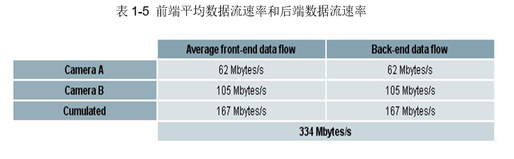 一个白摄像机(Dual-W),Data Clock Speed是40 MHz数据时钟。从表1-1可以看出Tap structure 为Dual-W的时候,其Mulitplier为4,所以前端的峰值数据流量为160MByte/S。