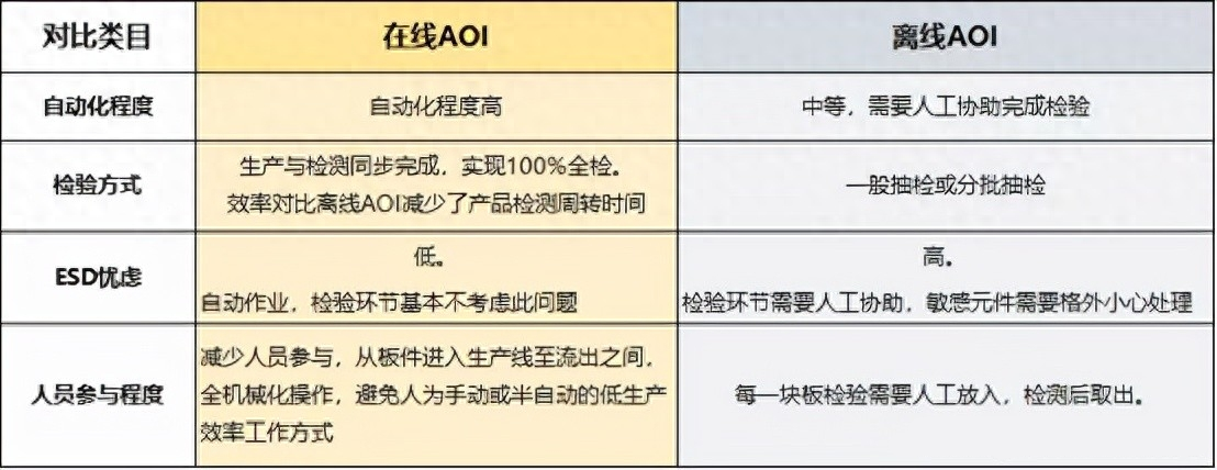 2、检验对象基本相同,但是在线AOI对小元件效果更好,主要是因为在线AOI配置相对更高。