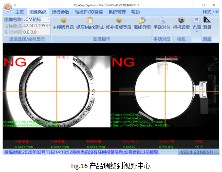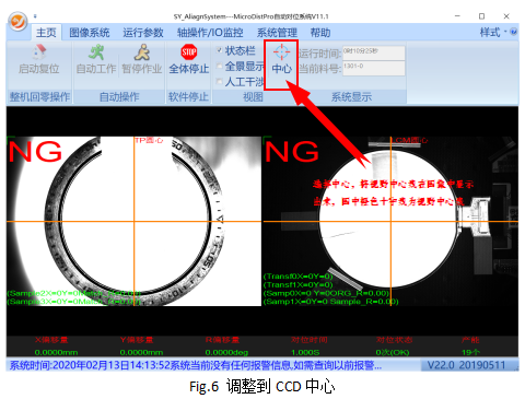 软件上点击中心,在图像中可以看到橙色的十字线,这个为视野中心,在产品上料过程中,我们需要将产品放置到橙色十字交点即视野中心位置。