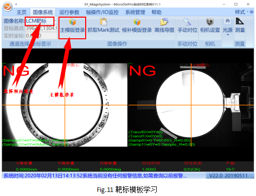 ? Step1:如图11所示,通过“通道名称”处选择我们要进行模板学习的通道:“LCM靶标”,然后点击“主模板登录”进行图像的模板学习。
