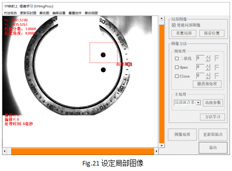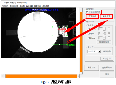 ? Step2:如下图12所示,勾选“使能局部图像”,点击“重置局部”以调整局部图像的范围和位置,调整完毕后,点击“保存位置”进行保存。局部图像是限定图像的查找范围,以提高命中率和缩短图像处理时间。
