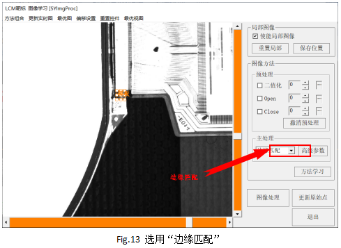 ? Step3:如下图13所示,下拉重新选择“边缘匹配”,黄色的模板框工具则会显示出来,通过拖拽调整使模板框位置和大小合适,再点击“方法学习”,则学习记录当前的模板。