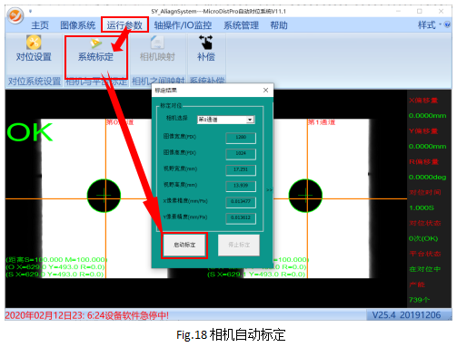 系统全体停止的状态下点击“运行参数”->“系统标定”,弹出标定界面后,点击“启动标定”即可开始标定,系统提示标定完成即完成标定。