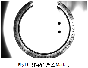 ? Step1:在TP上贴两个黑色的Mark点,并将TP放置到治具上通过模组搬运到目标相机下。