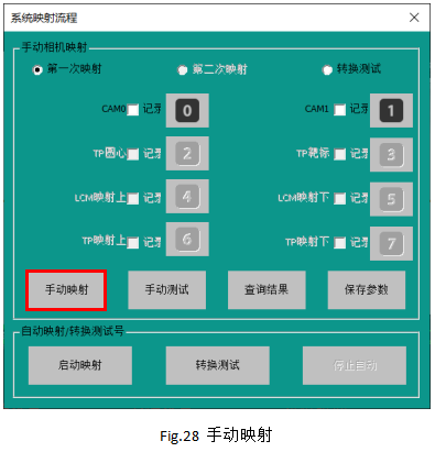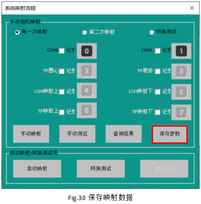 系统全体停止的状态下,打开相机映射界面,放置好TP,点击“启动映射”,抓点OK完成第一次映射后,再点击“转换测试”进行一次转换测试。