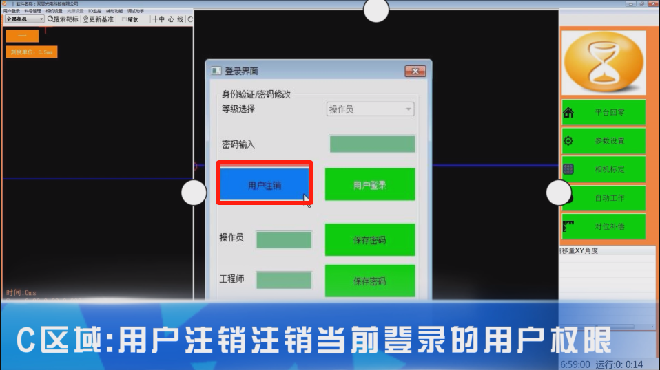 -点击用户注销,注销当前登录的用户权限,之后便可登录其他操作权限。