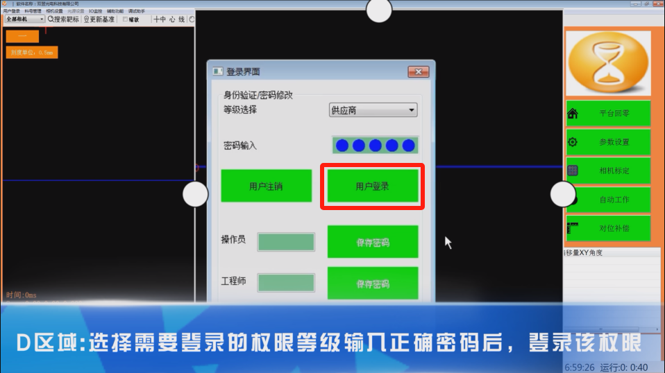 -选择好需要登录的权限等级后,输入正确密码后,点击用户登录,登录该权限