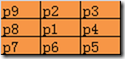 我们对一副二值图像进行骨架提取,就是删除不需要的轮廓点,只保留其骨架点。假设一个像素点,我们定义该点为p1,则它的八邻域点p2->p9位置如下图所示,该算法考虑p1点邻域的实际情况,以便决定是否删除p1点。假设我们处理的为二值图像,背景为黑色,值为0,要细化的前景物体像素值为1。