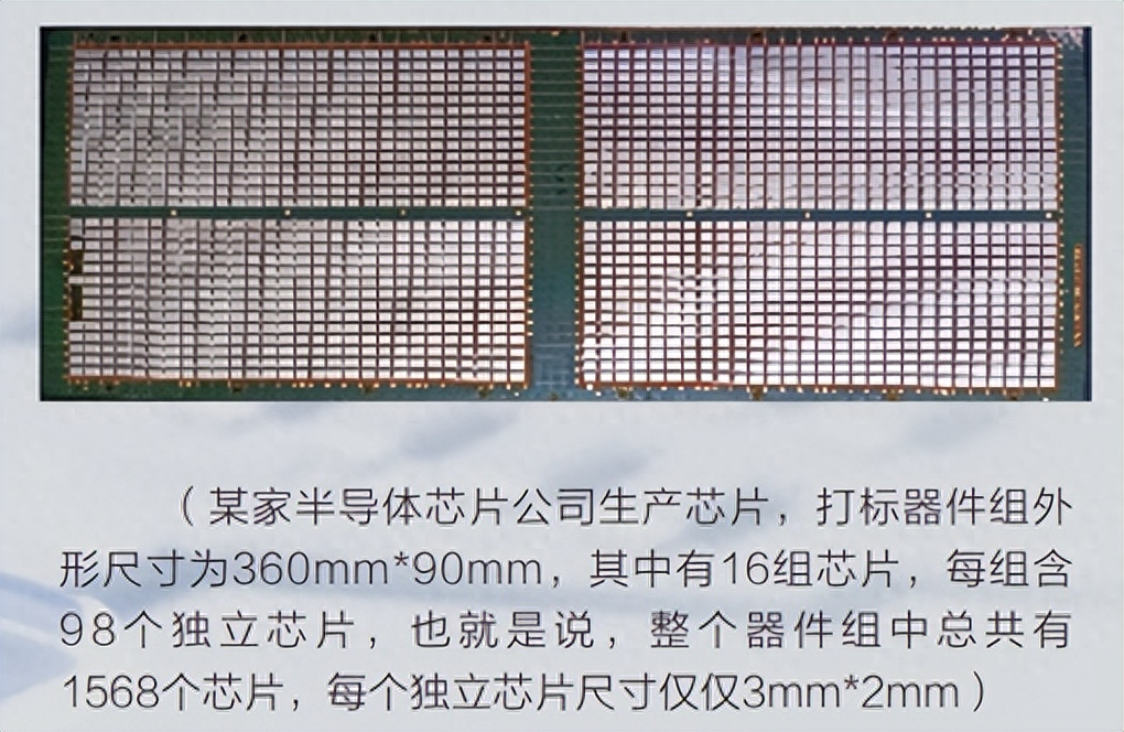 目前机器视觉技术在激光切割、激光焊接、激光打标、激光微加工等高精密加工领域中应用最为普遍。而机器视觉技术在激光打标的应用,特别是在半导体和电子行业中应用较多,例如在各种进行批量生产的技术和设备、各种芯片生产技术和设备、各种电子类产品的生产加工设备。往往在电子类产品中需要进行打标的产品面积越来越小,精度要求也越来越高。其中具有代表性的是微电子技术中的IC(集成电路)技术,其集成度越来越高、速度越来越快、体积越来越小,贴片式器件逐步发展成IC的主流产品,其外观特点是小型化。