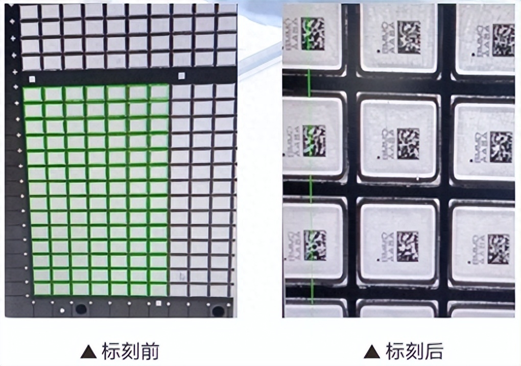 那么配有机器视觉定位激光打标机机器就针对这个尺度的器件进行工作,目的是在每一个独立小芯片的表面标记二维码和型号等信息,要求标记清晰,位置正确,而且不能歪斜。如不采用机器视觉,可能会出现机械误差从而很难全部标记到合适位置;采用机器视觉不但能够清晰的将信息标记到芯片表面,还可以精准标刻、防重复、多个产品一次定位,还具有动态适应性,能够自动修正芯片方位误差,保证打标精度。在激光打标中应用机器视觉,不仅能够提升设备的档次,更能提高打标速度。