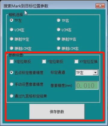 进入“搜索靶标Mark到目标位置参数界面”