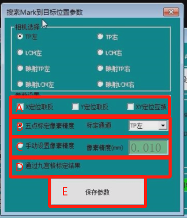 参数设置部分大致可分为A、B、C、D、E五部分功能