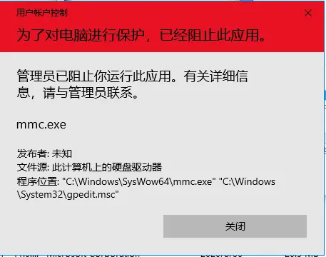 本方法适用于打开组策略等系统工具或点击“此电脑”——“管理”时会出现管理员已阻止你运行此应用。有关详细信息