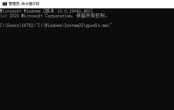 第二步:在cmd控制台输入一下路径然后回车机会打开本地组策略编辑器(注意要输入双引号)