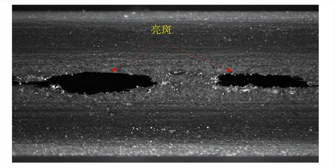 亮斑的大小为≥0.2mm2,其位置位于边缘的中部。亮斑部分较磨削过的面光滑,当有光照射时可呈镜面反射,人眼看呈一块明亮的区域;设置一定的光照角度,使用显微镜头采集其特征时,磨削过的表面经过漫反射可以被镜头捕捉一定的光,而亮斑区域由于镜面反射的角度没有与镜头垂直,大部分光没有被捕捉到,因此亮斑在整个图像中呈最暗的区域。