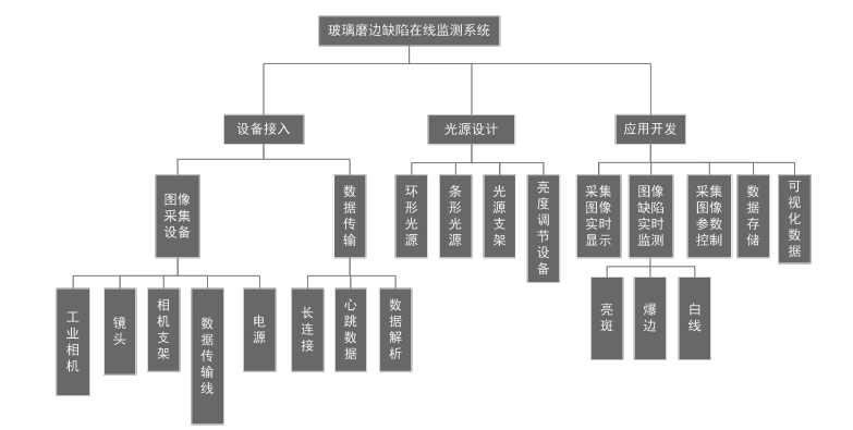 为实现系统的实时数据采集和图像分析,对系统的功能模块进行划分主要功能分为图像采集、光源和图像处理应用的开发。