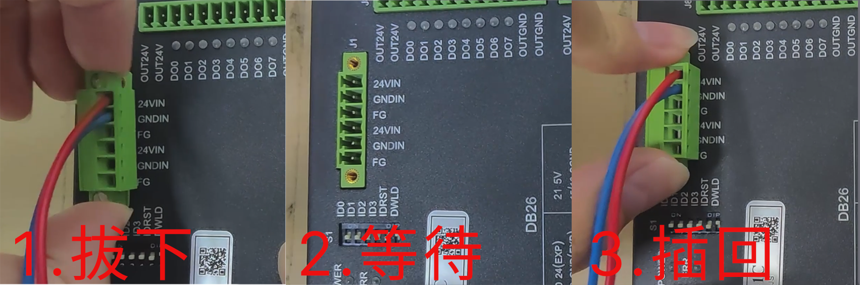 此时POWER电源灯是不亮的状态,说明已经进入运动控制器固件升级状态。