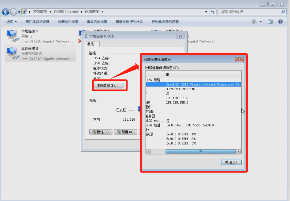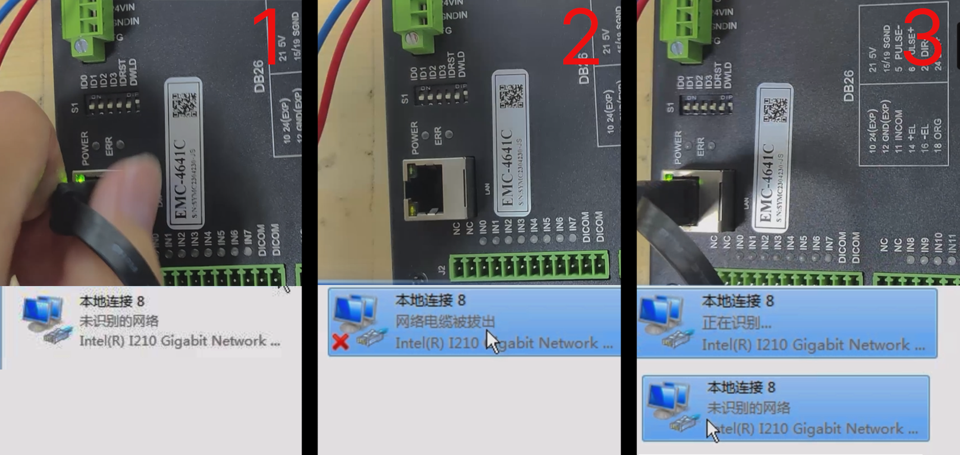 拔下网线,重新接入,可以看到正在重新识别,稍等几秒连接完成