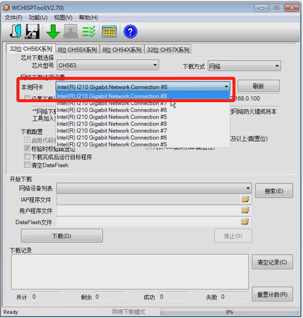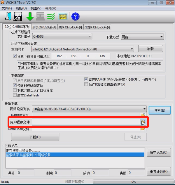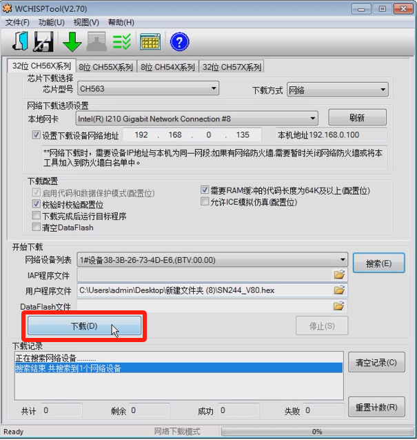勾选“设置下载设备网络地址”设置运动控制器IP,输入192.168.0.135