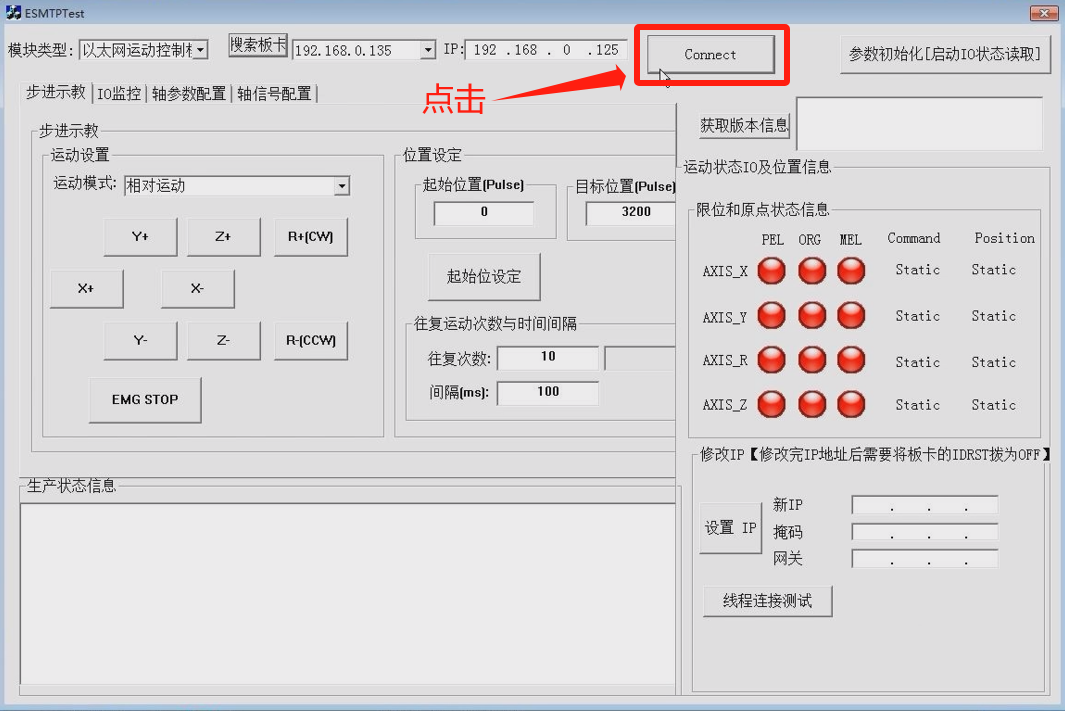 点击Connest,等待几秒后在生产状态信息栏处显示“模块连接成功”