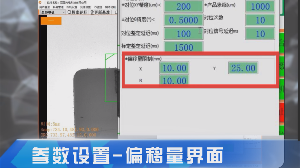 偏移量XYR限制:对位过程中对位平台X方向/Y方向/R旋转方向最大可以移动的距离;根据现场情况,点击数字框进行设置。