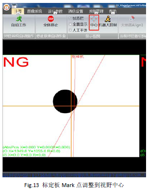 机械手吸起标定板,将圆形Mark移动到图像视野中心。